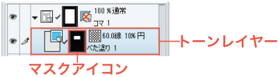トーンレイヤーには、「マスク」という表示範囲を決める機能があります。