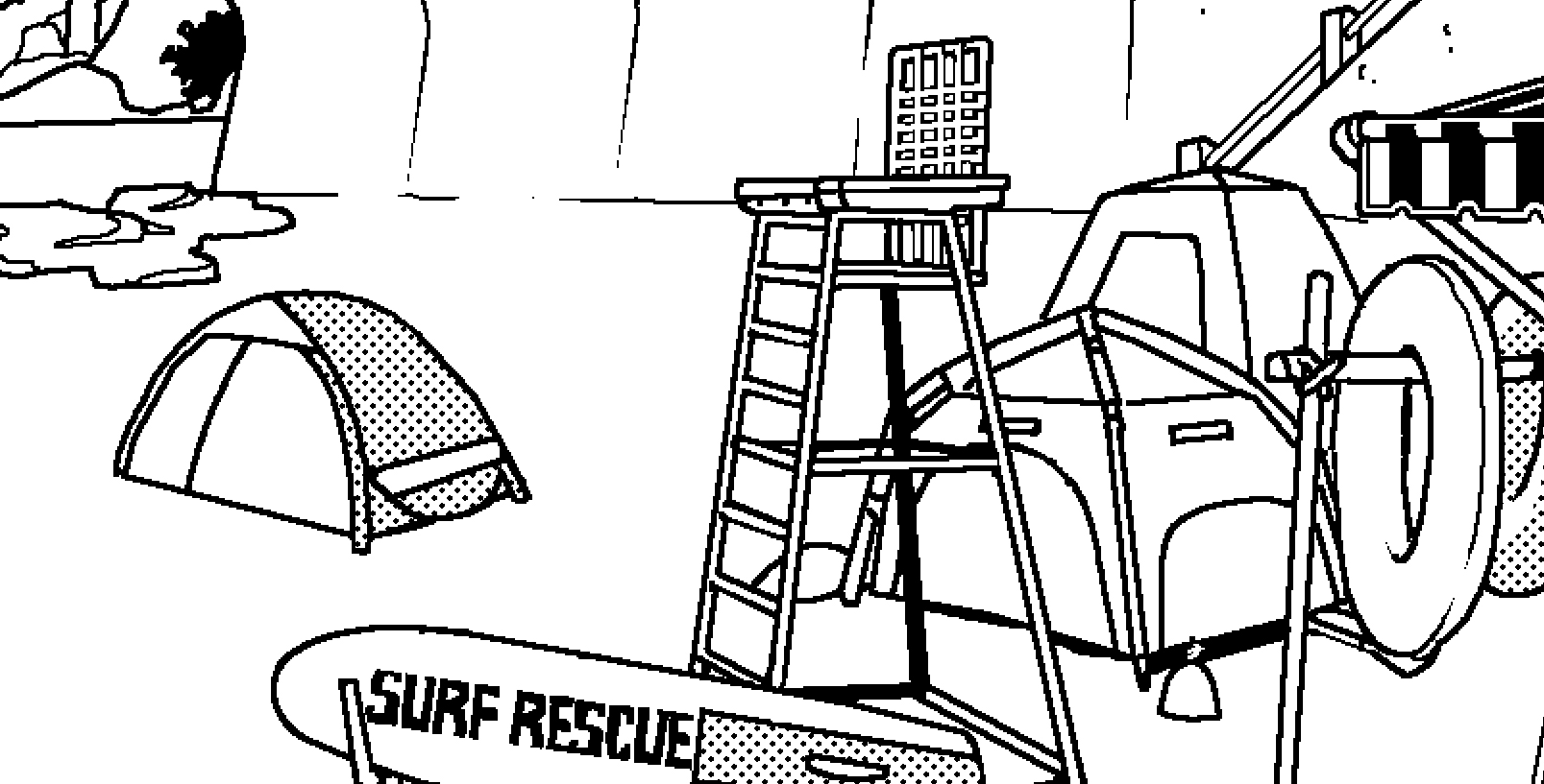 ▲縦のコマで描いていますが海水浴場は横長の大ゴマが描きやすい…。