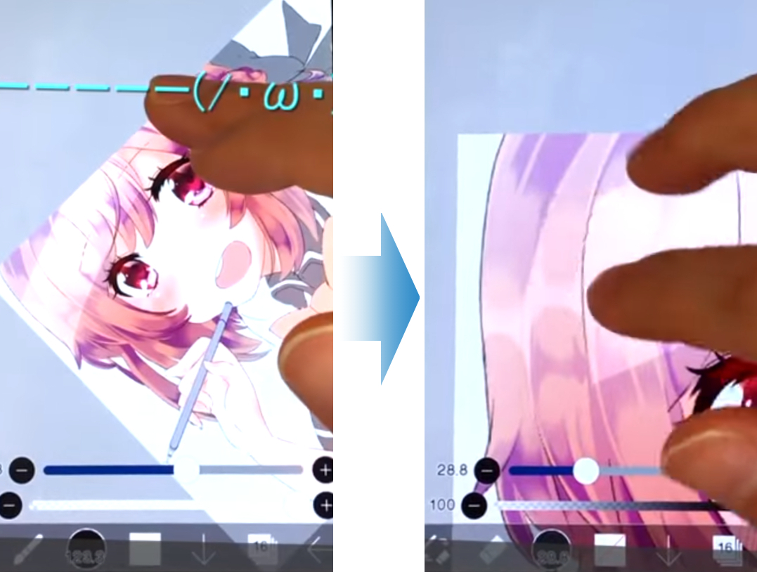 特にスマホの場合は画面が小さく、細部を描くときに拡大するため全体を見ながら描くことができません。