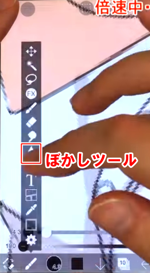 シャドウを入れたらツール選択から、ぼかしツールで所々にぼかしを入れていきます。