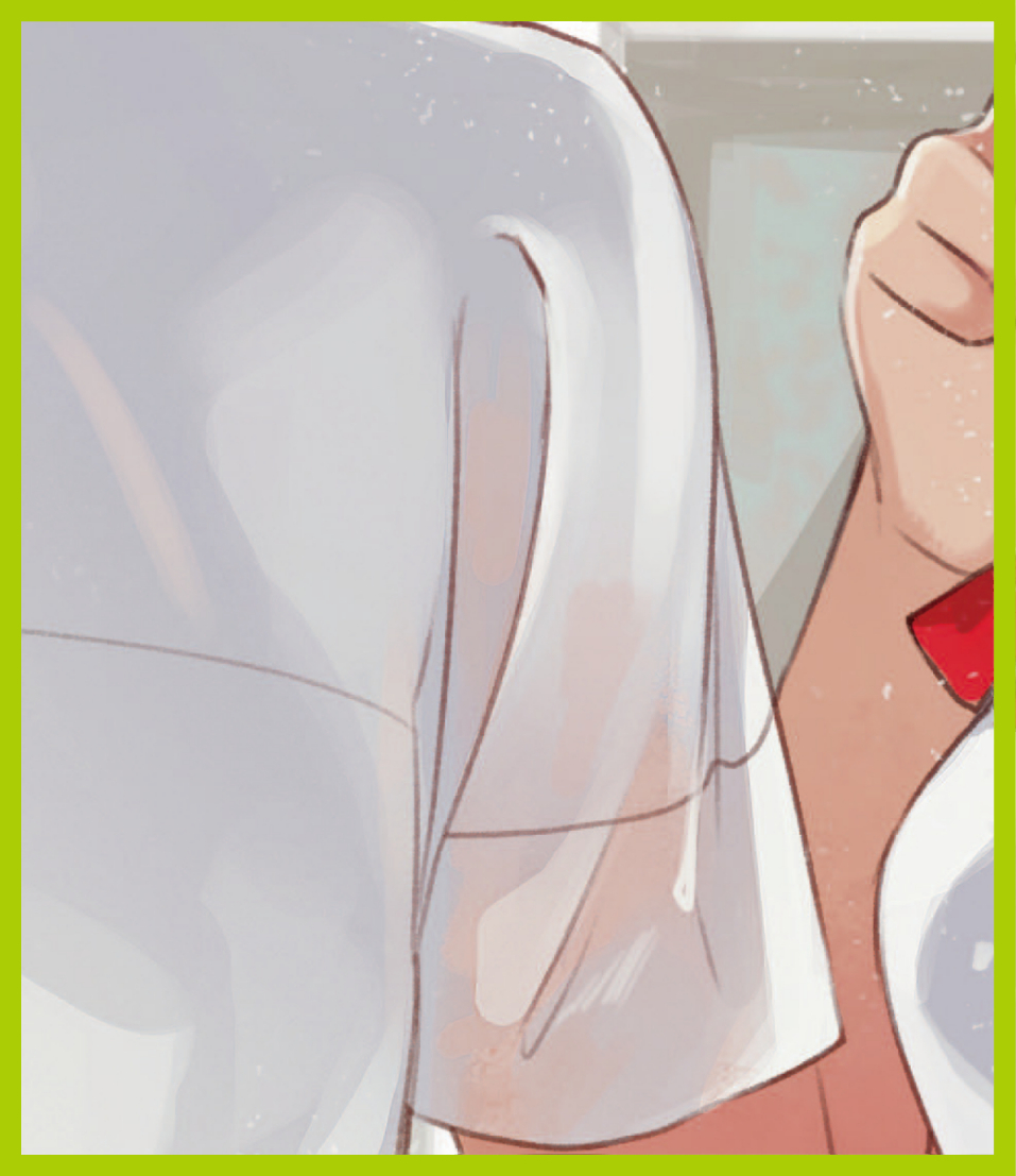 まずは髪やシャツに光の反射や陰を描いて、ディテールを詰めていきます。