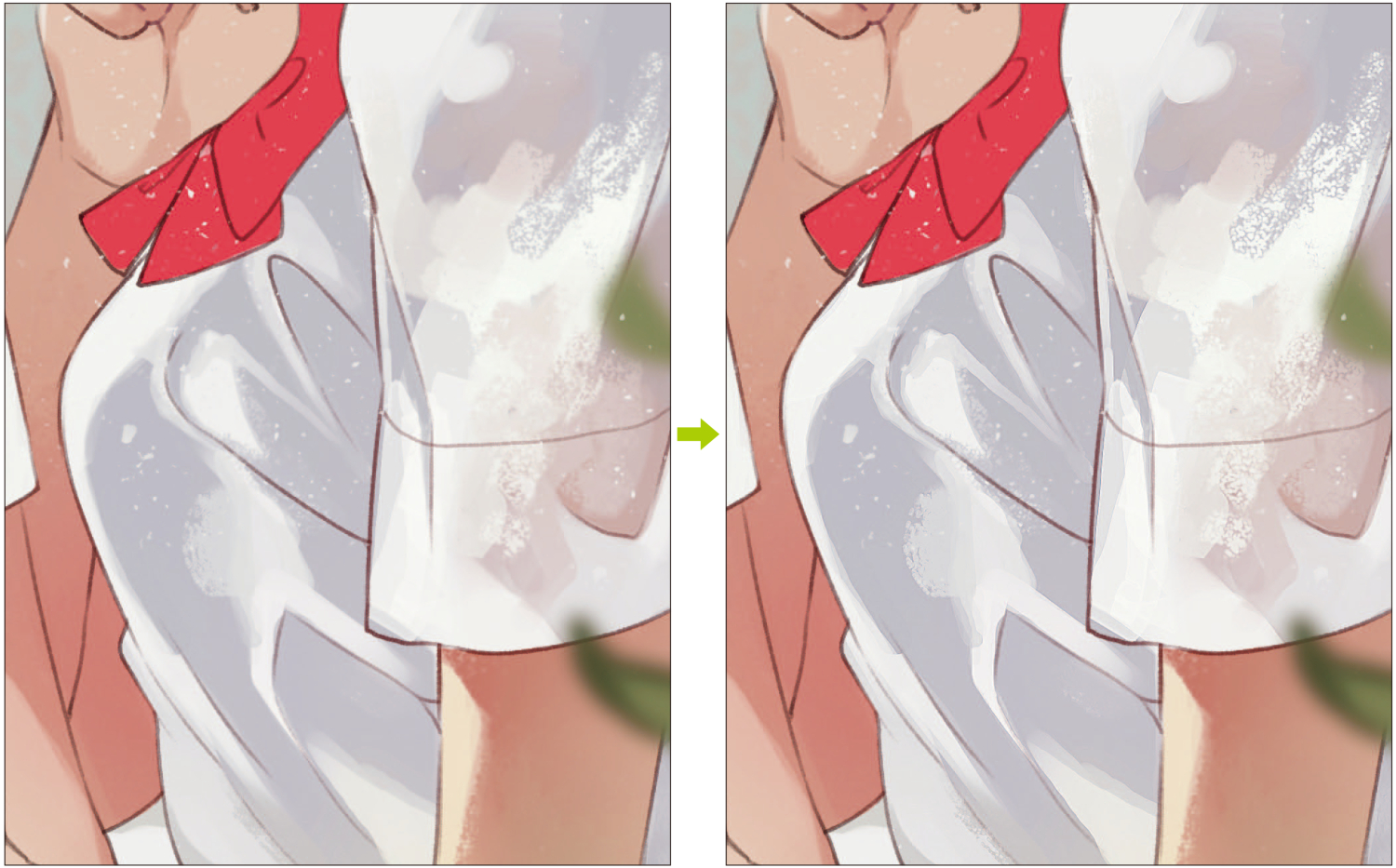 塗料は効果をかけた部分を少しぼかしたような感じであいまいにしてくれるので、塗り込みすぎてしまったときは、この効果を使ってバランスをとっています。