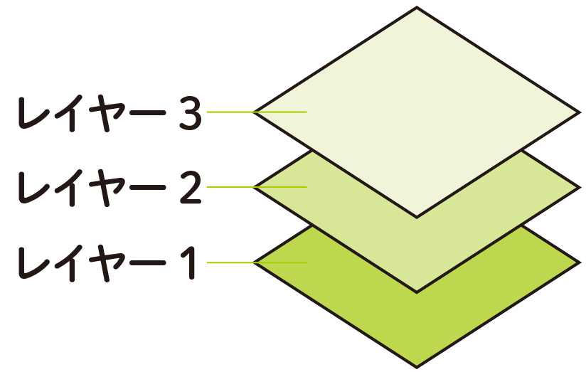 Photoshop やCLIP STUDIO では、画像をレイヤーという階層に分けて重ねていくことができます。
