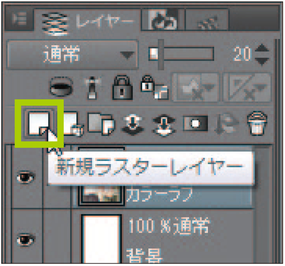 ▼CLIP STUDIO では左上のボタンをクリックするとレイヤーを新規作成できます。
