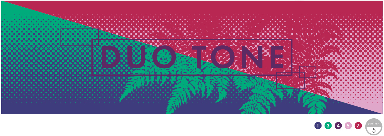 モノトーンと言えば「モノ(単一)+トーン(色調)」の意味で無彩色配色のことだが、デュオトーンのDUOとは二つのという意味。