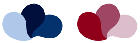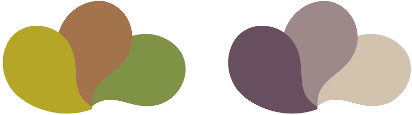 色相・明度・彩度が似通った色同士の組み合わせです。離れて見た時に単色に感じられるような配色です。 微妙なニュアンス表現に使えます。