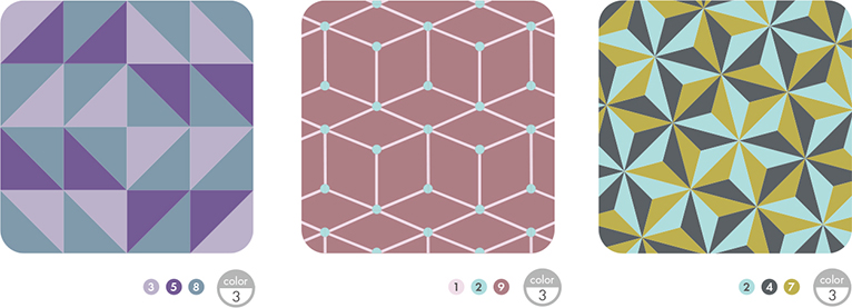 中間色で作る配色で、落ち着いた渋みが感じられます。