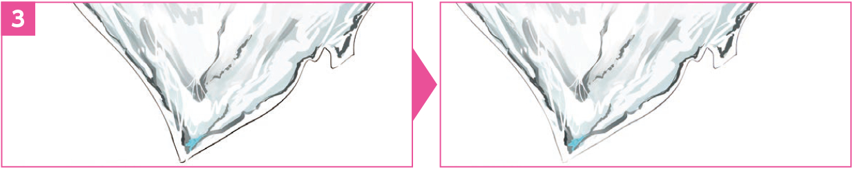 [ペン]ツールを使い、水の根元から先端へ(下から上へ)と向かう水の流れを塗りで表現します。
