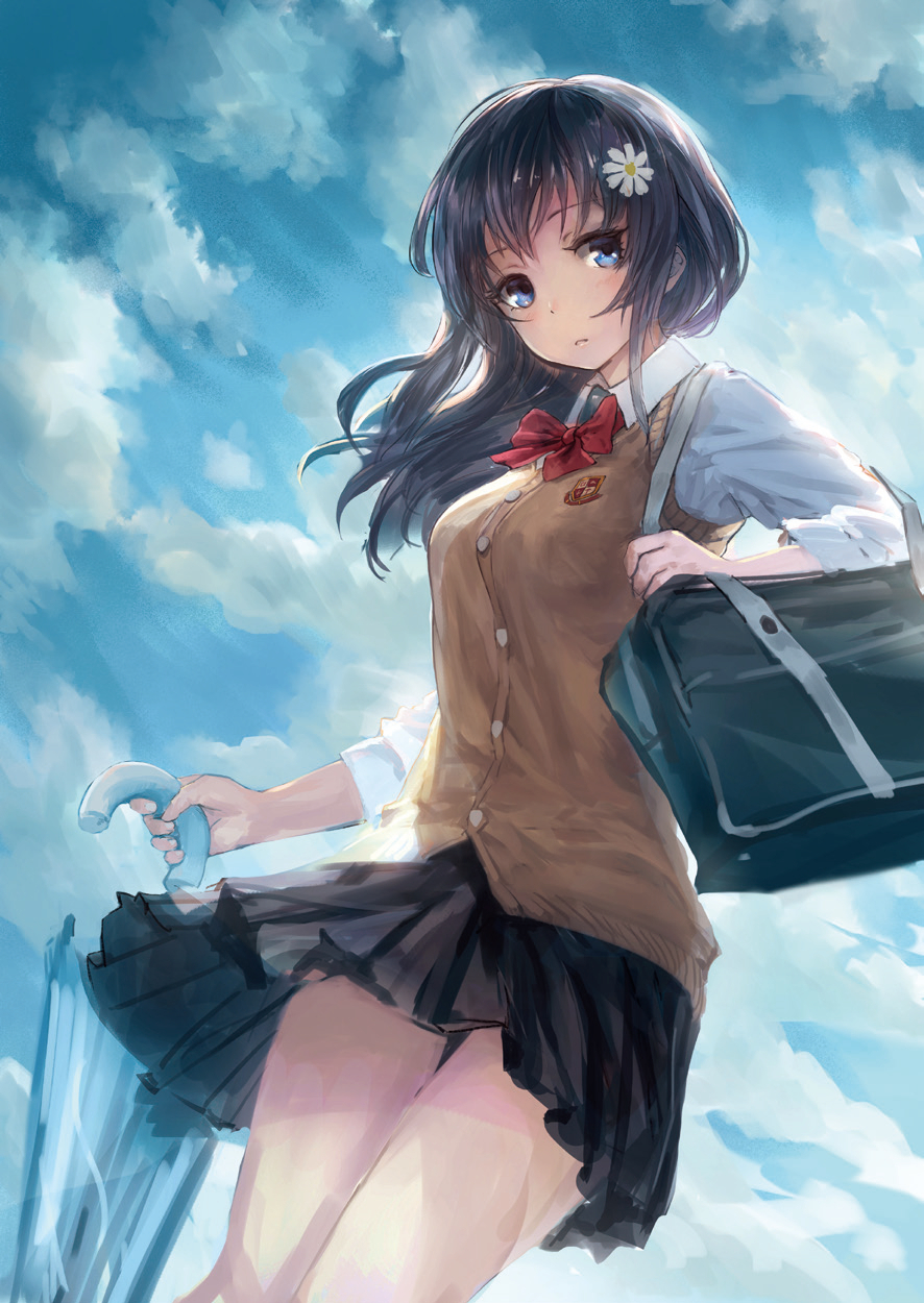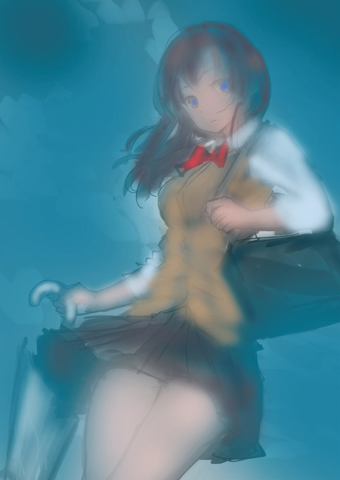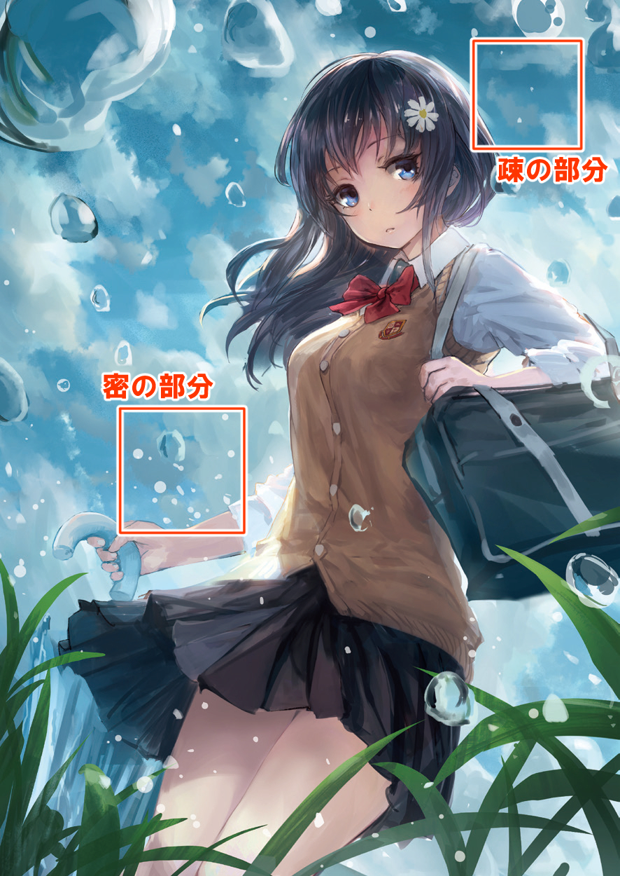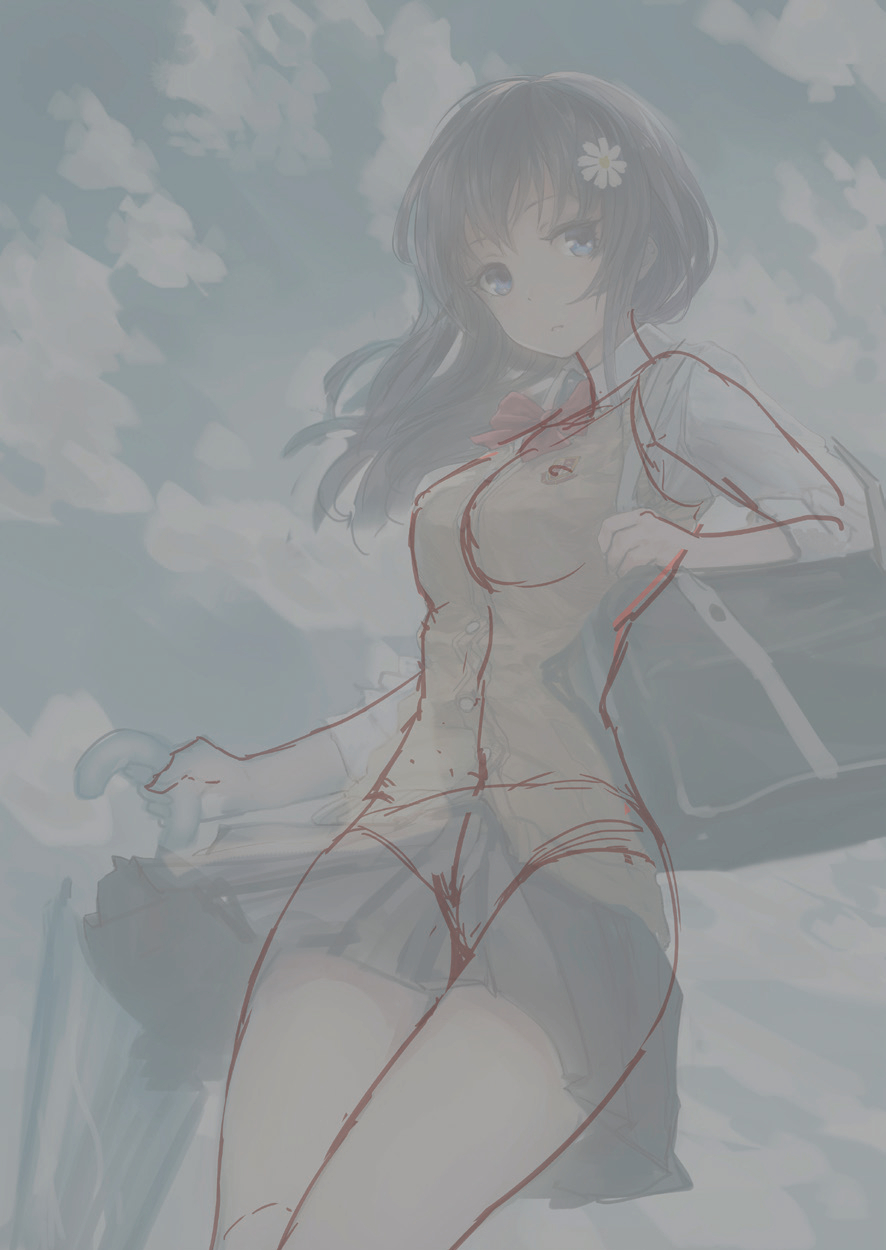 夕立が止んだあとの澄んだ空気と晴れやかな空が大好きなので、その雰囲気を演出するために、女の子には傘を持たせて水滴を多く加えてみました。