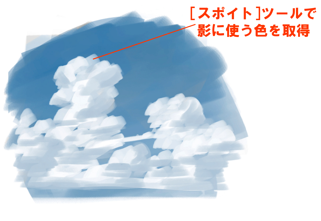 レイヤーを新規作成し、雲のシルエットに影を描きます。