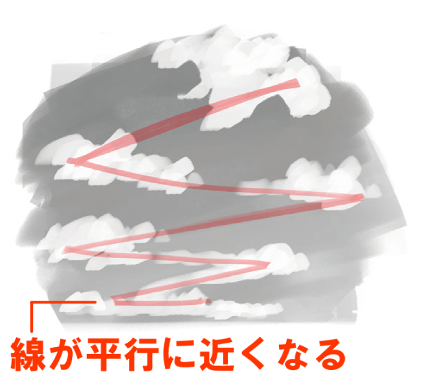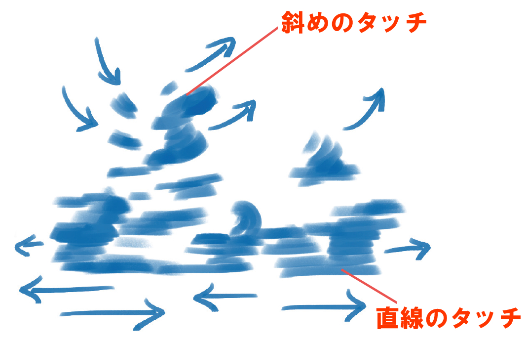 雲の上は斜めのタッチ 、下は横の直線タッチにすることが大切です。