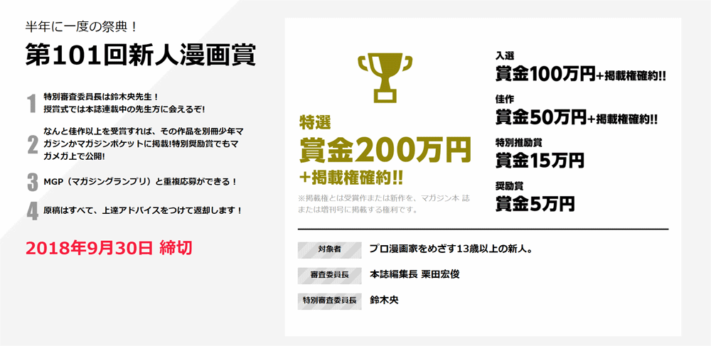 ※本記事は講談社「週刊少年マガジン」公式HP「マガメガ」内の新人賞企画「漫画家への花道」から特別掲載しています。