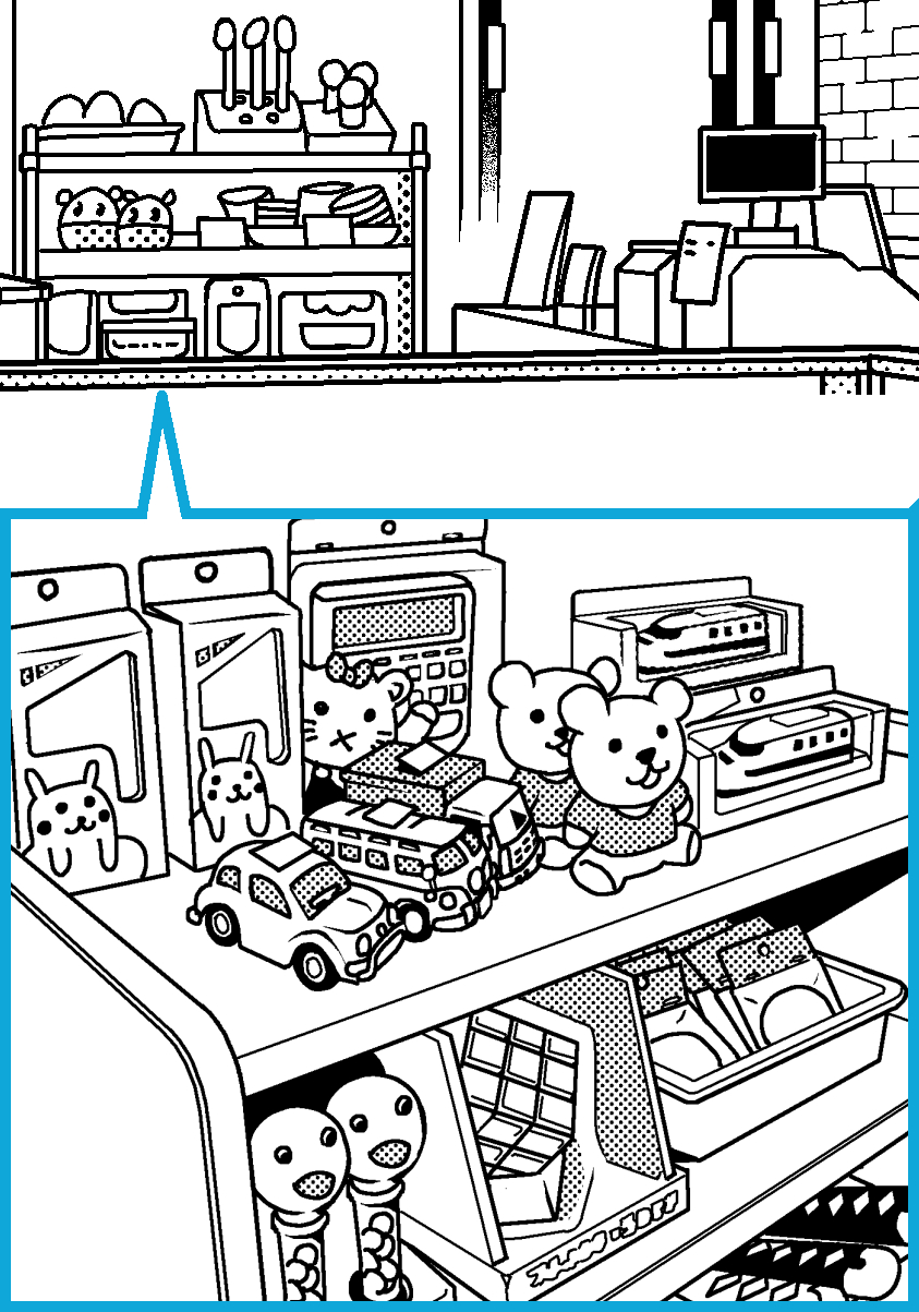 ▼レジ付近のおもちゃがファミレス感
