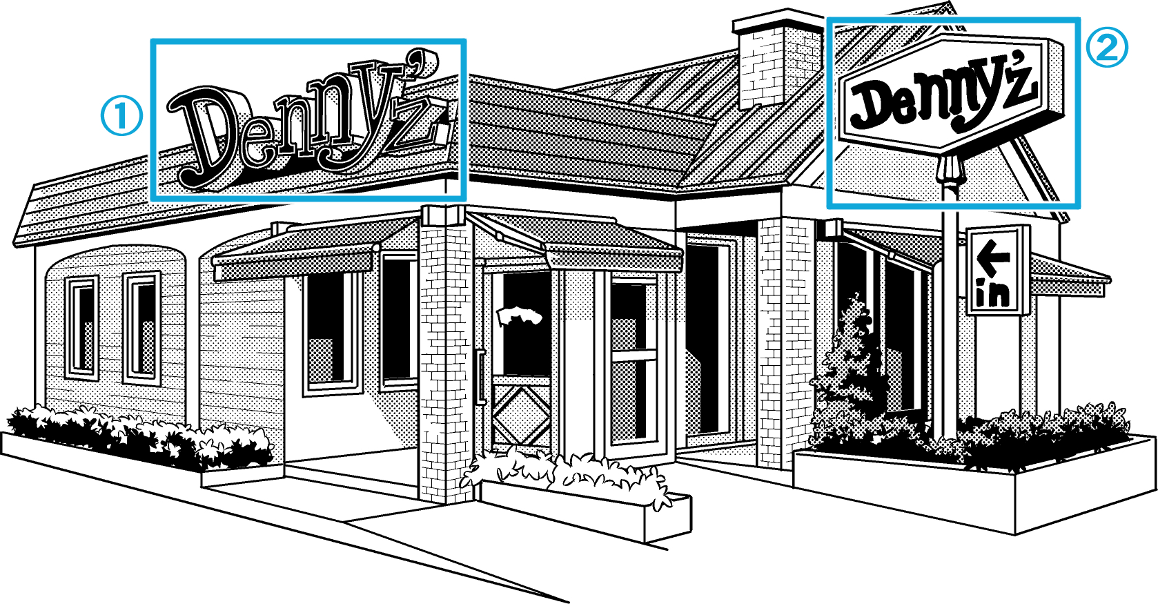 ②看板の形もファミレスの記号