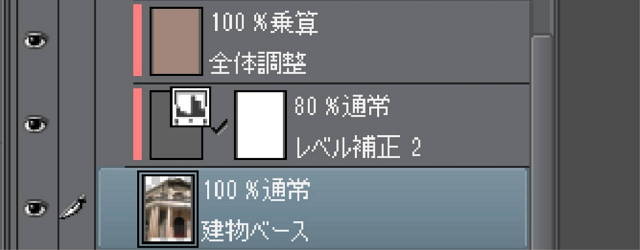 このようにして、背景とキャラの明暗が馴染むように調整します。