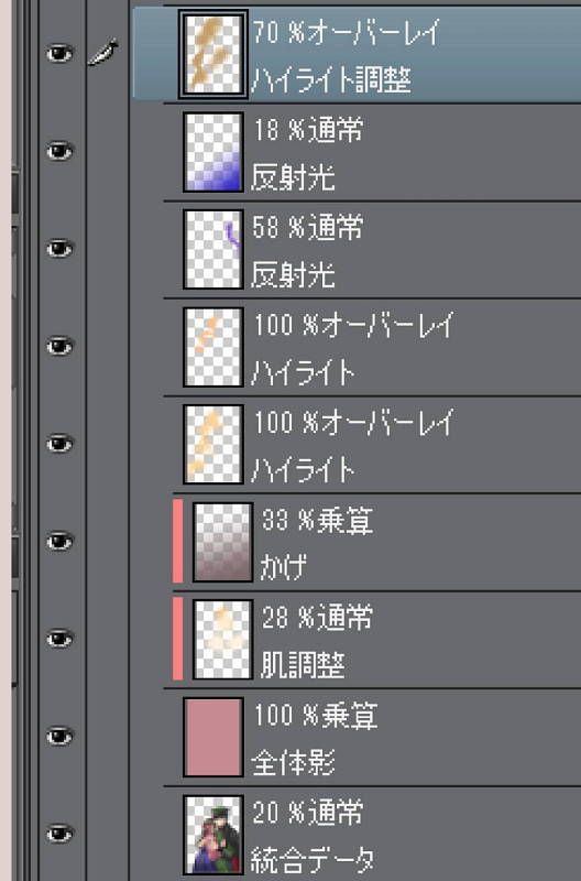 合成モード[乗算]に設定したレイヤーに塗ります。