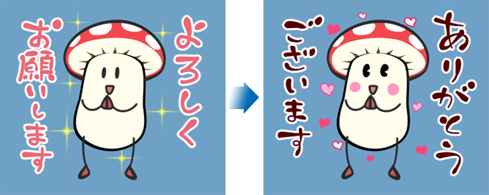 利用可能な素材を貼り付けるだけで、さまざまな感情を表現できます。