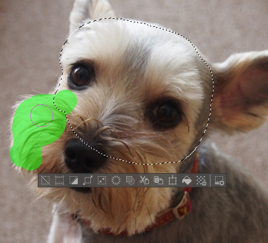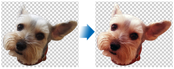 作例では犬の輪郭に沿って選択範囲を作って切り抜いています。