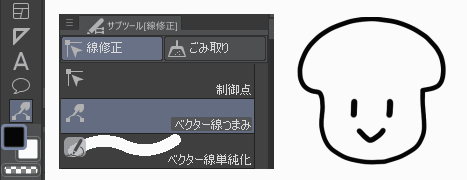CLIP STUDIO PAINTでベクターレイヤーに線画をかけば、後から線の形を修正できるので、スマホを使って指で描いた場合でも思い通りの形にしやすいですね。