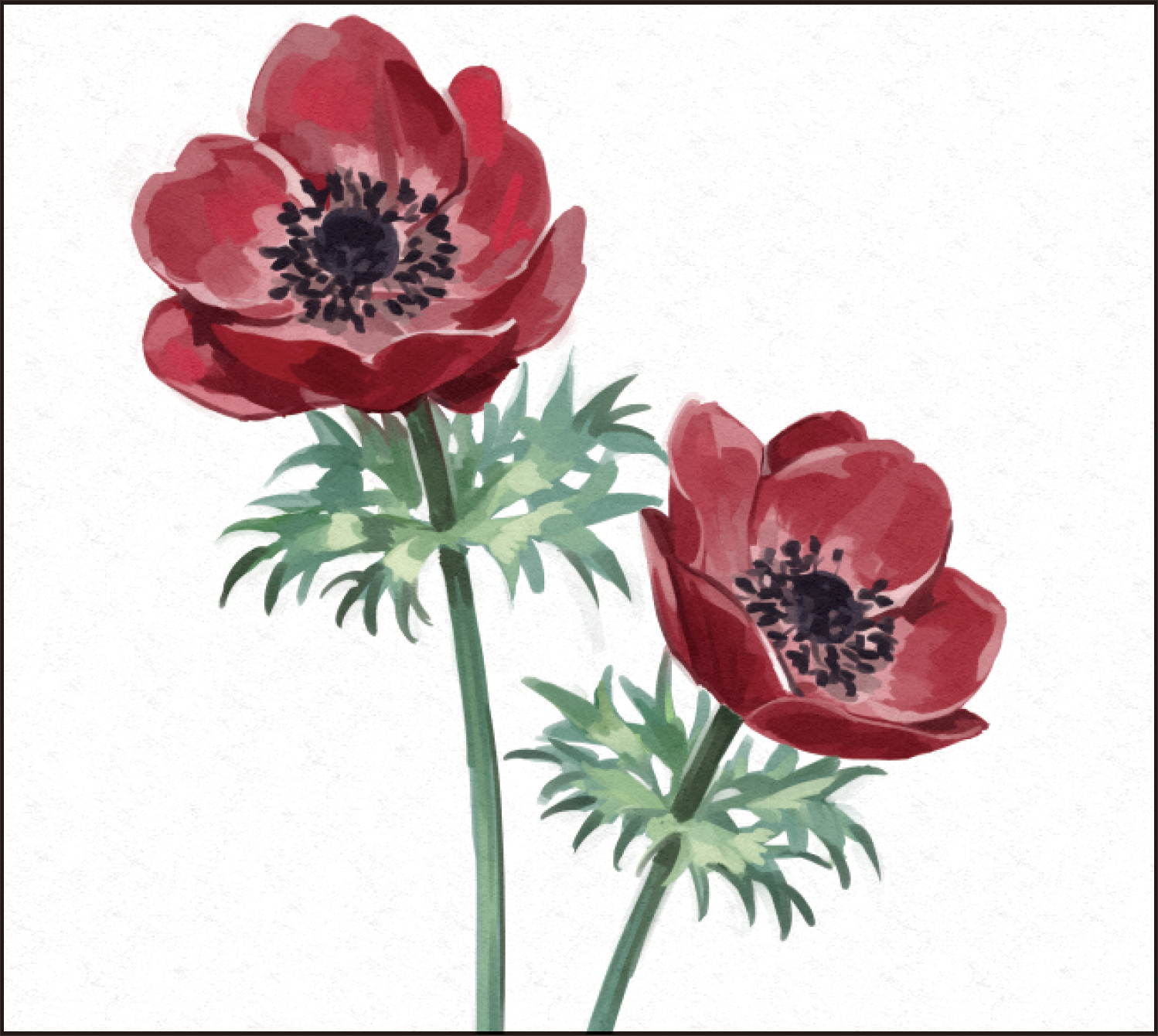 黒系の色でアネモネの中央部を描き込んでいきます。