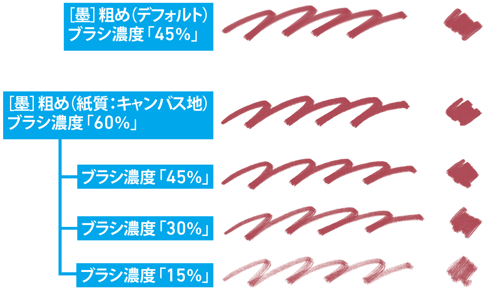 [ブラシ濃度]については、下のHintを参照しましょう。