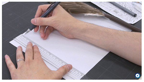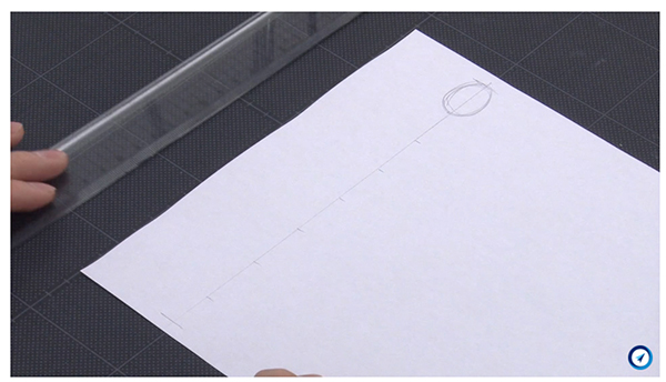 次に、真っ直ぐに立たせたいので、紙に対して垂直に線を下ろします。