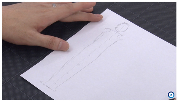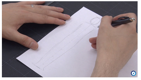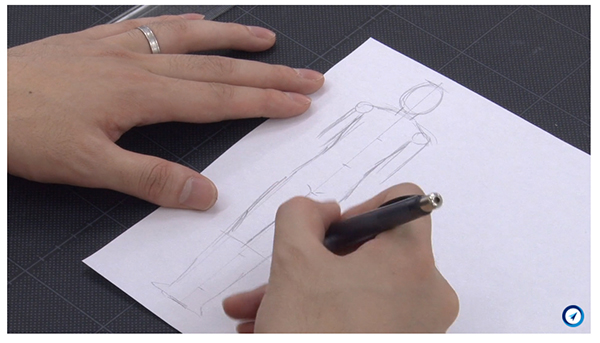 最初に、頭のてっぺんから足の先まで、ここに描きたい、と思う場所に目安を描いてください。