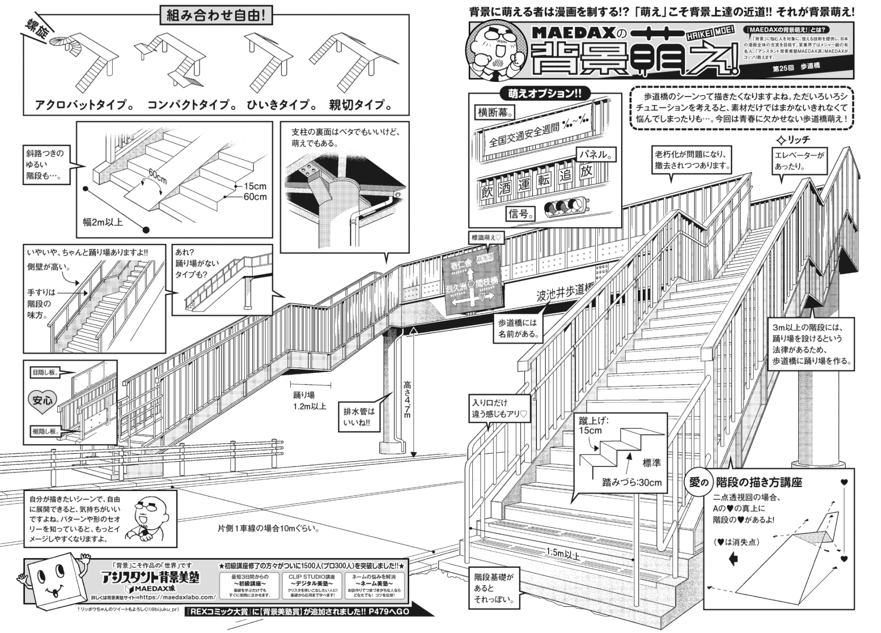 「MAEDAXの背景萌え!」とは? 「背景」に悩む人を対象に、使える技術を提供し、日本の漫画全体の充実を目指す。某業界ではメジャー級の有名人、「アシスタント背景美塾MAEDAX派」MAEDAXがコッソリ教えます。今回は歩道橋編!