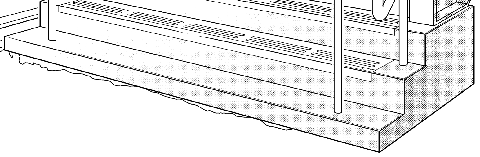 ・3m以上の階段には、踊り場を設けるという法律があるため、歩道橋に踊り場を作る。