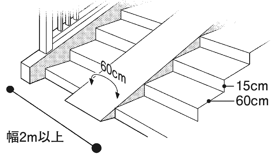 ・手すり幅は1.5m以上。