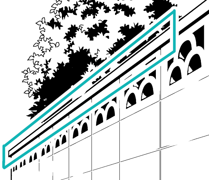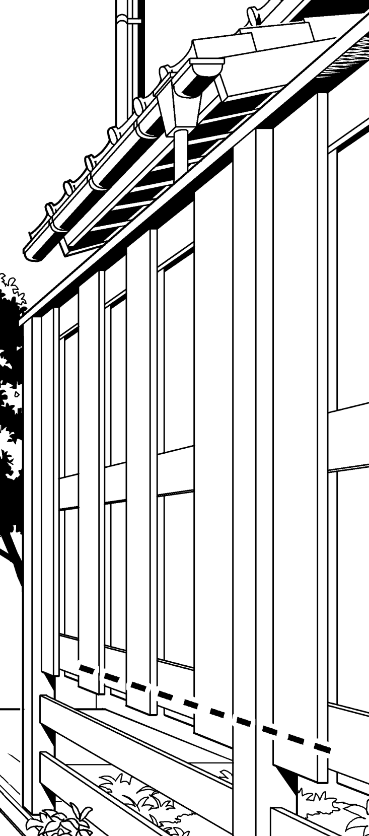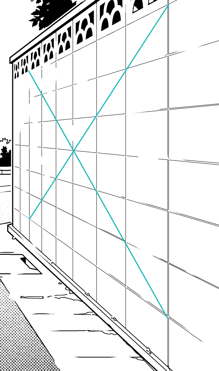 塀を描くとき大切なのは見えていなくても家の接地を考えておくとスケールがぶれずに描ける。
