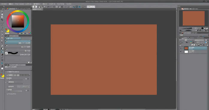 まず、ベースの色を[塗りつぶし](Alt+Del)でベタ塗りします。ベースの色は、極端に明る過ぎず、かつ暗過ぎない色を選びます。