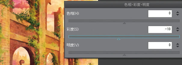 ①[レイヤー]メニュー→[新規色調補正レイヤー]→[色相・彩度・明度]を選び、[彩