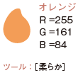 ②さらに上に[加算]モードのレイヤーを作り、いっそう光を加えるイメージで[柔らか]を使って彩度の高いオレンジを重ねます。
