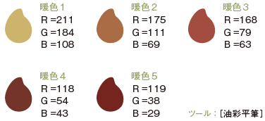 さまざまな色を使って、[筆]ツール→[厚塗り]→[油彩平筆]でランダムに乗せていきます。ベースの色を基準に乗せる色を作ると、色調が統一されたテクスチャを作成できます。ここでは暖色系の色を使っています。