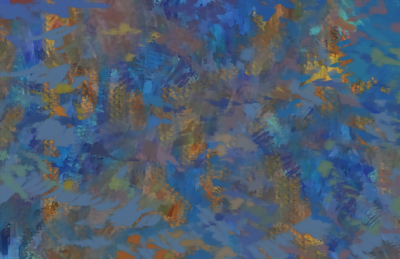 メイキングで使用したテクスチャは、過去にAdobe Photoshopで作成しストックしておいたものですが、基本的な作り方は同じです。寒色系をベースに赤や黄色を加えてカラフルにしたこちらを作品に使用していきます。