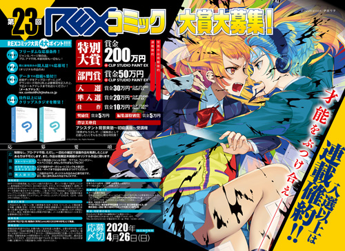 特別大賞200万円のマンガ新人賞、REXコミック大賞も大募集中!