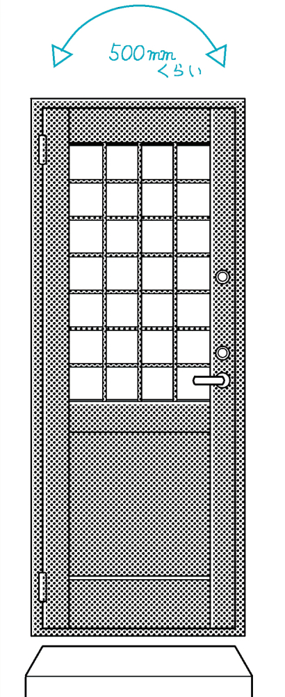 今どきの玄関は上の小窓がなく、上まで扉になっている。(ドア幅は変わらないので縦長のドアに見える)