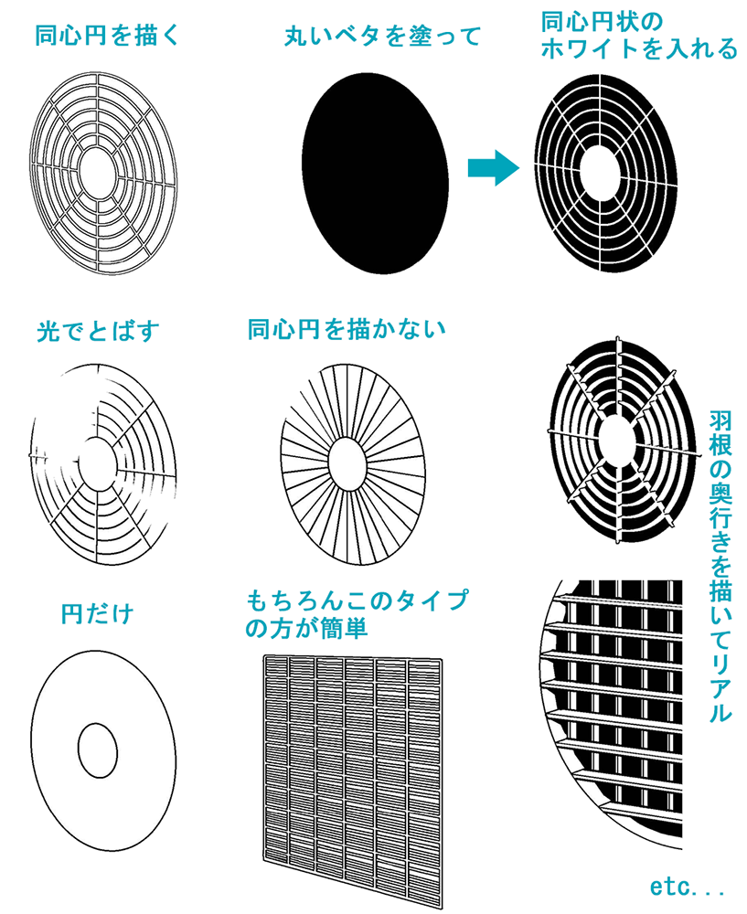 熱中症対策にエアコン必須ということは、背景にも描いたほうがリアルなのが室外機。今回はエアコンの”室外機”萌え!