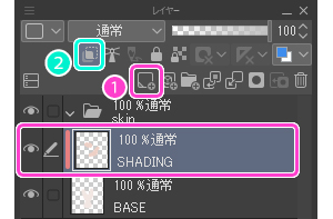 最初のレイヤー「BASE」の上に新しいレイヤー「SHADING」を作成します。