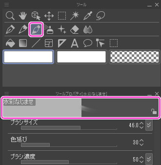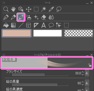 ツールを選択します。シェーディングと同じ[水彩毛筆]サブツールを使います。