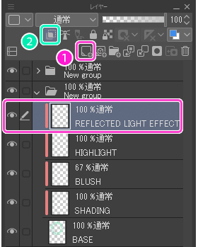 前のレイヤー「HIGHLIGHT」の上に新しいレイヤー「REFLECTED LIGHT EFFECT」を作成します。