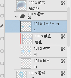 瞳の塗りは、レイヤーフォルダー「色」の中にレイヤーフォルダー「顔」を作成してまとめました。