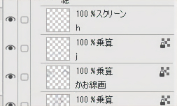 下塗りをしたレイヤー「リボン」の上に[乗算]レイヤー「乗算」を作成します。
