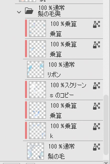 その後、[乗算]レイヤーを作成し、リボンの重なりを描き込みます。