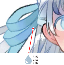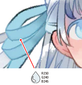 透明感を出すために最初白で塗ったのですが、白くなりすぎていたので、バランスを見て水色で調整しました。