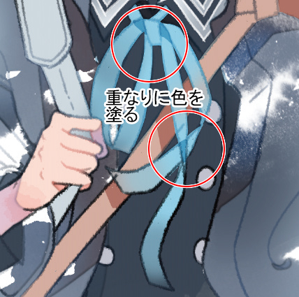 1.リボンの重なりを塗る