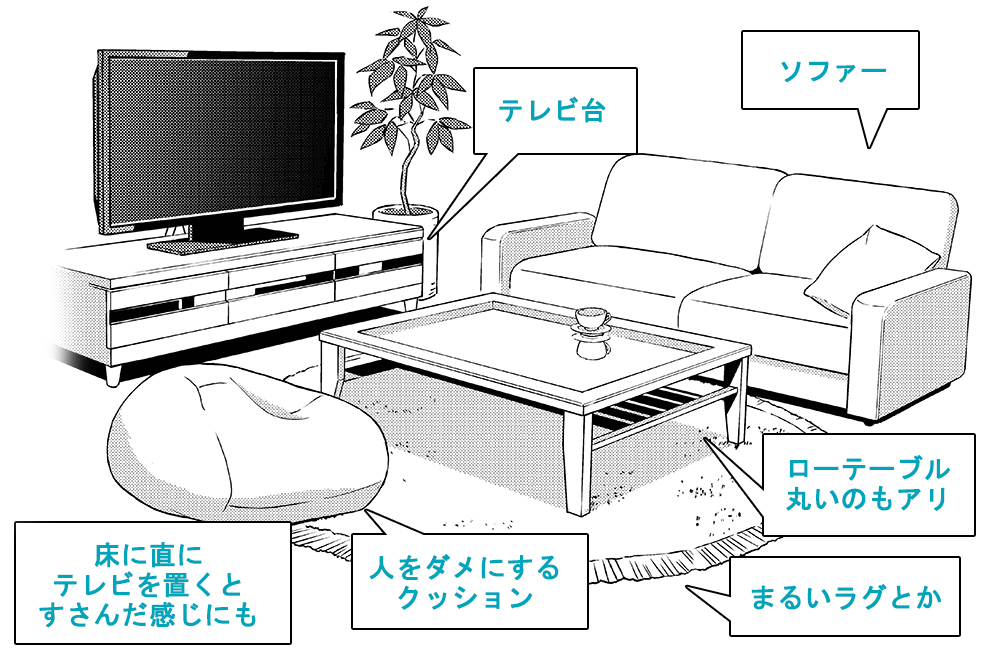部屋の中って描くとき悩みが多かったりします。部屋の中に萌えを探してみましょう。