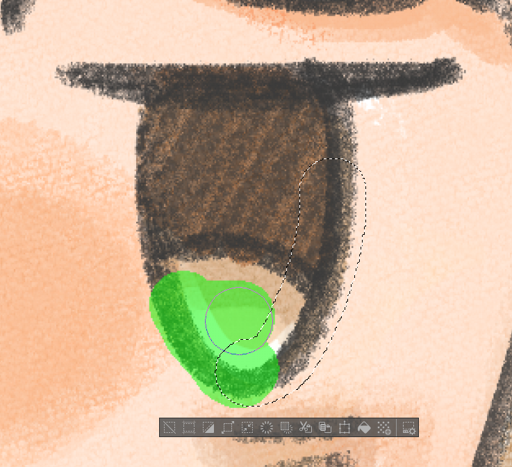 線画レイヤーから目の部分の選択範囲を作成し、コピー&ペーストしました。