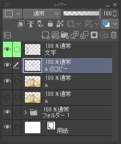 目の「線画」と「塗り」以外を結合したのっぺらぼうのようなレイヤーを作成し、まばたきアニメの土台とします。この動かさないレイヤーを「a」としました。